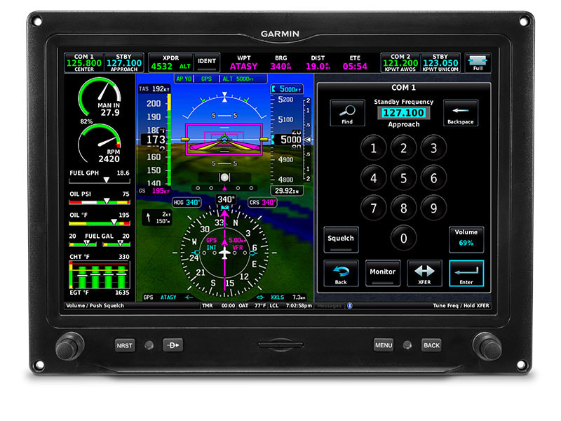 VHF COMM rádio s podporou 2 280 kanálů nabízí vysílací výkon 10 wattů plus pilotem volitelný rozestup kanálů 25 kHz nebo 8,33 kHz. Stačí klepnout na pohotovostní polohu pro zadání nebo nalezení své frekvence, pak klepnout na aktivní frekvenci pro přepnutí.
