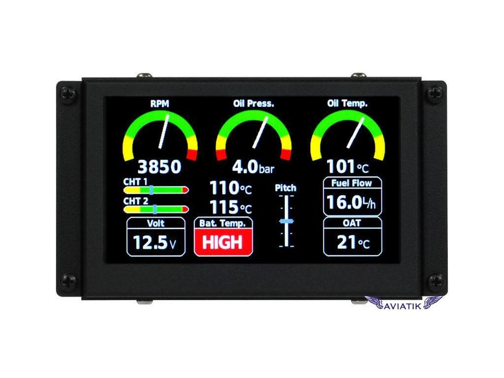 Monitor zobrazení motorových dat. K jeho funkci je potřeba převodník senzorů motoru Kanardia DAQU