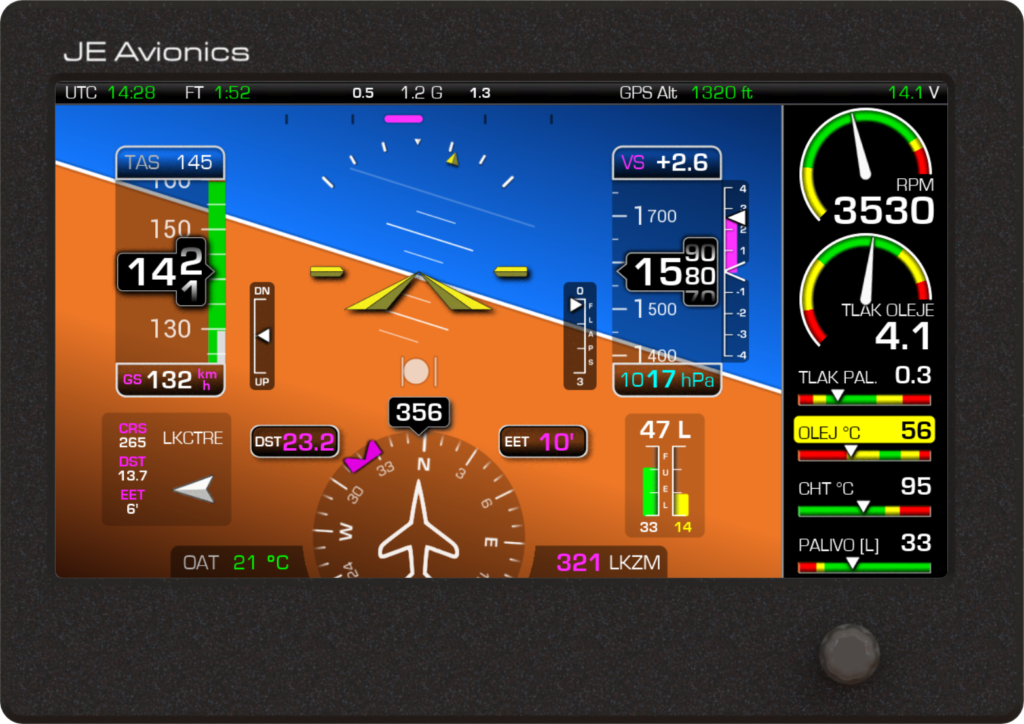 Sdružený letový přístroj od české firmy JE AVIONICS.